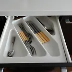 Το διαμέρισμα διαθέτει ξεχωριστή τουαλέτα και ντους για την άνεση σας. Επιπλέον, θα βρείτε στεγνωτήρα μαλλιών, πετσέτες και παντόφλες στο μπάνιο.
